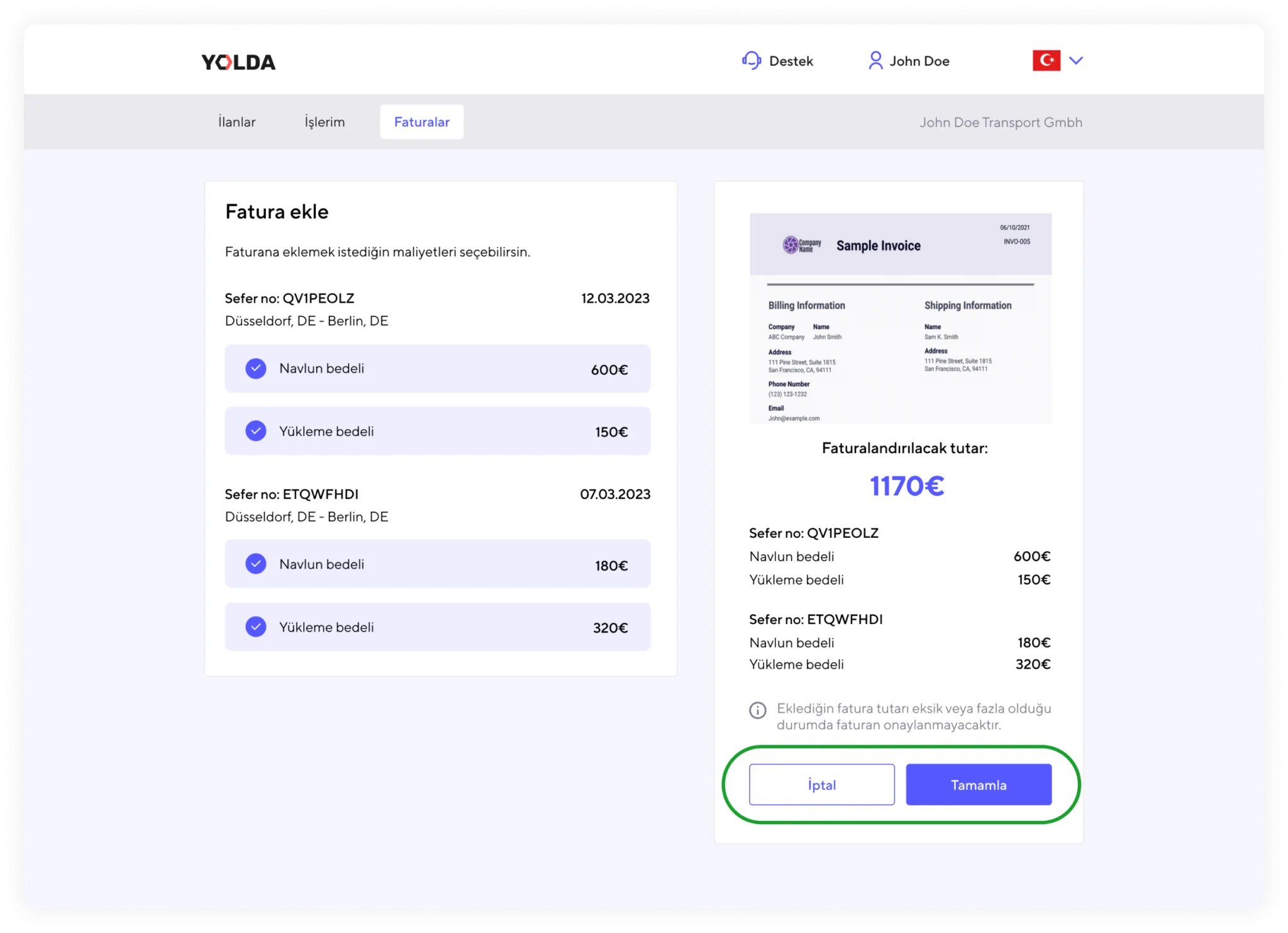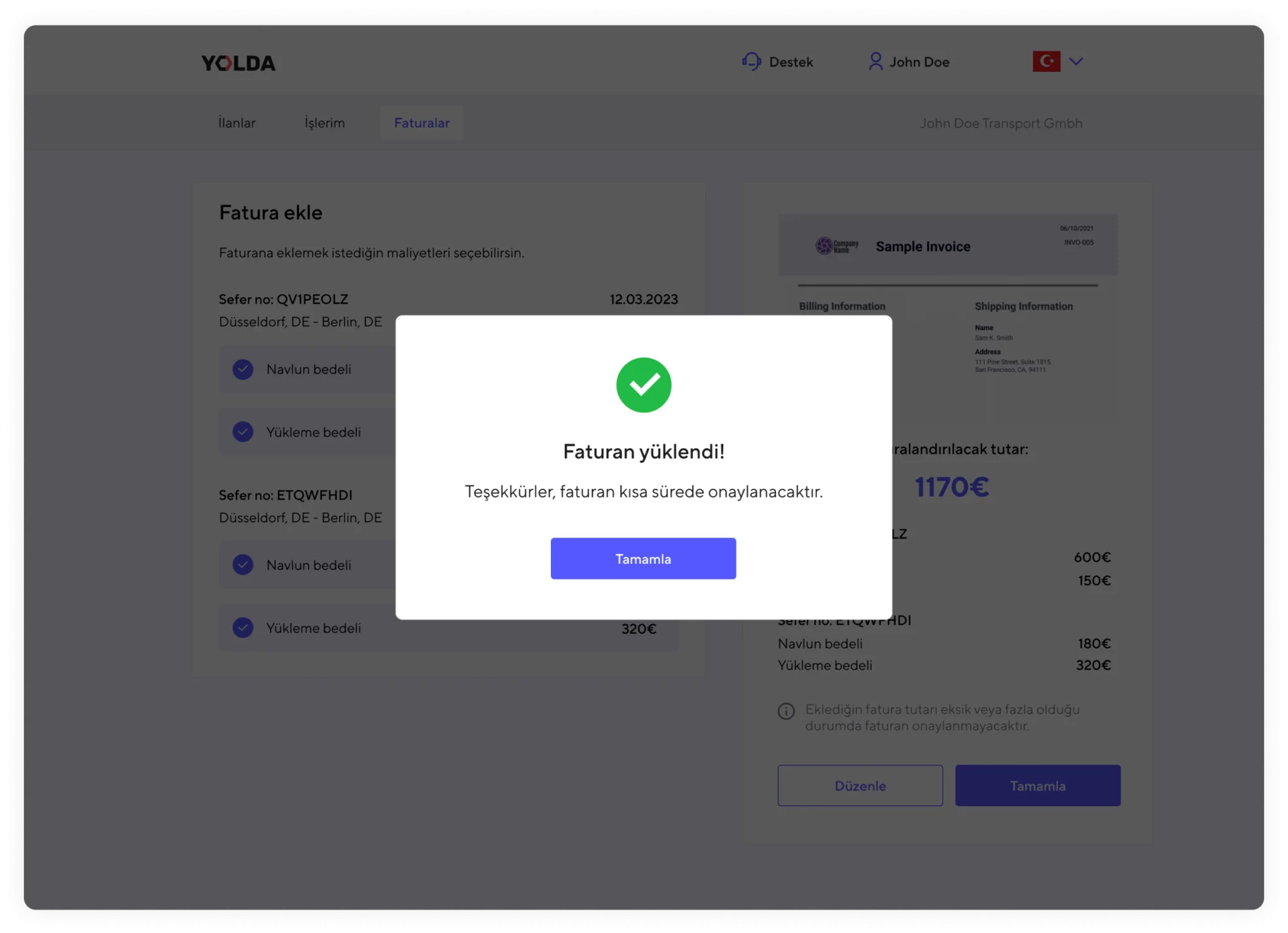 6. Your invoice has been successfully uploaded. It will be reviewed by the Yolda team as soon as possible, and your payment will be sent to you on time.